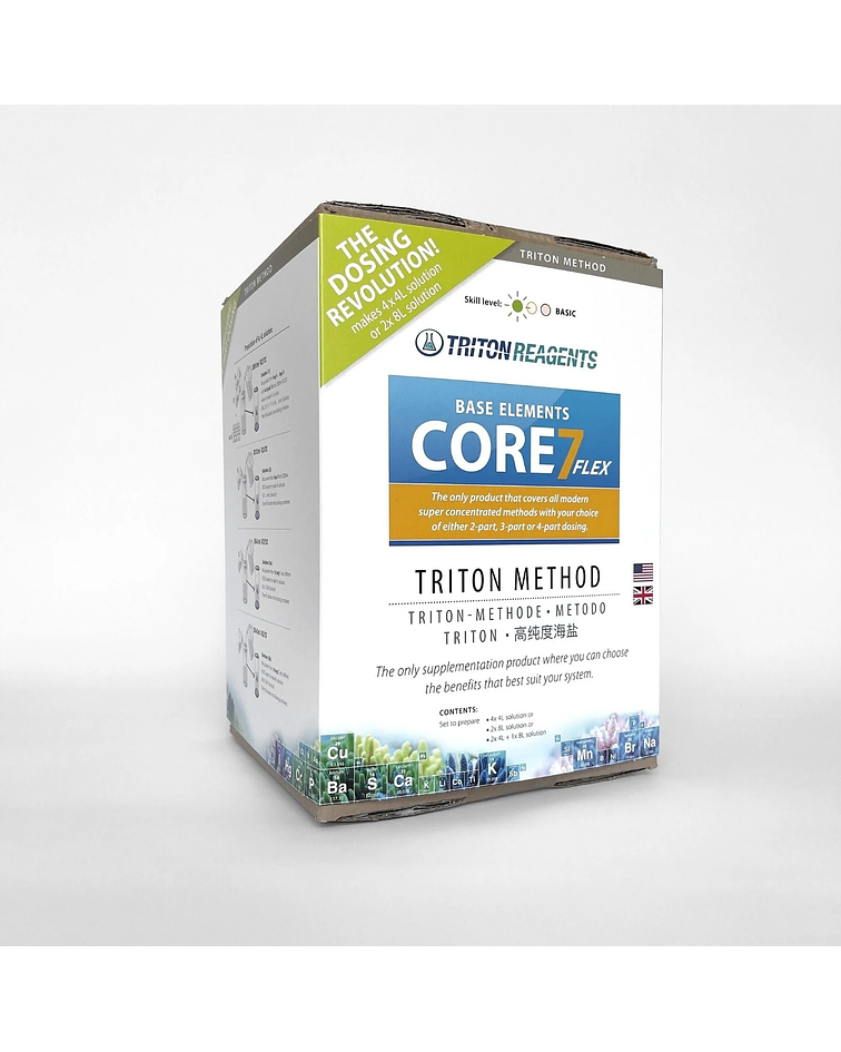 CORE7 Flex es la siguiente generación de soluciones de dosificación diseñadas para complementar y mantener parámetros de agua de mar casi naturales para acuarios de arrecife utilizando el Método TRITON de mantenimiento de arrecifes.